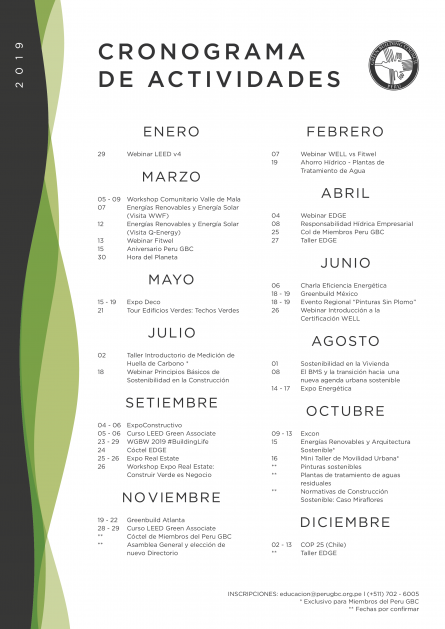 Este año tendremos diferentes seminarios, cursos, talleres, eventos y por supuesto el Peru Greenbuild.