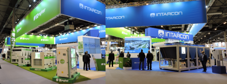 Para refrigeración industrial Intarcon propone a su vez soluciones de bajo PCA, como son las enfriadoras intarWatt de condensación en V de R152 con compresores semi herméticos Frascold para una producción frigorífica de hasta 350 kW, y los equipos compactos industriales Superblock para cámaras frigoríficas de mediano y gran tamaño para rangos de trabajo en baja, media y alta temperatura.