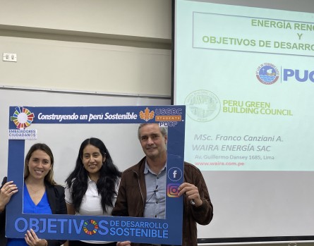 La semana pasada participamos con nuestro miembro Waira Energía en el congreso “Construyendo un Perú Sostenible” de nuestro aliado la Pontificia Universidad Católica del Perú, el grupo USGBC PUCP enfocado en la promoción y difusión de los #ODS (Objetivos de Desarrollo Sostenible).