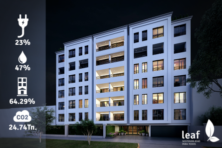 Este proyecto cuenta con un 23% de ahorro promedio en energía, 47% de ahorro promedio en agua, 64.29% de ahorro promedio en energía acumulada en materiales y ha mitigado 24.74Tn de CO2.