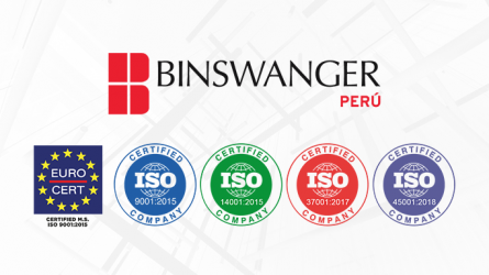En Binswanger Perú compartimos con mucho entusiasmo la noticia de haber obtenido la cuádruple certificación ISO en nuestros principales servicios de la unidad de Gerencia de Proyecto y Construcción, que a partir de ahora se suman a las certificaciones y homologaciones que ostentábamos.